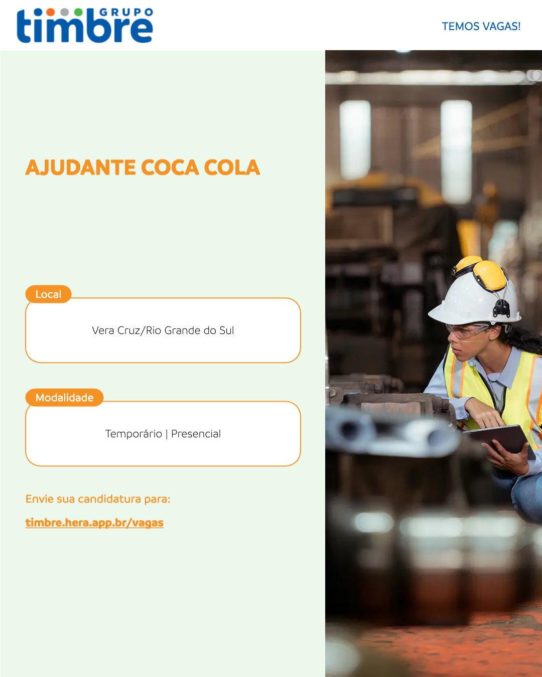 Vera Cruz/RS Presencial Temporário R$ 1.956,00